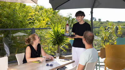 It's a quiet natural campsite with a friendly atmosphere and small but quality services, like your fresh bread in the morning or a drink and meal on the restaurant terrace, where you can enjoy splendid views of the sun setting over the hills.
