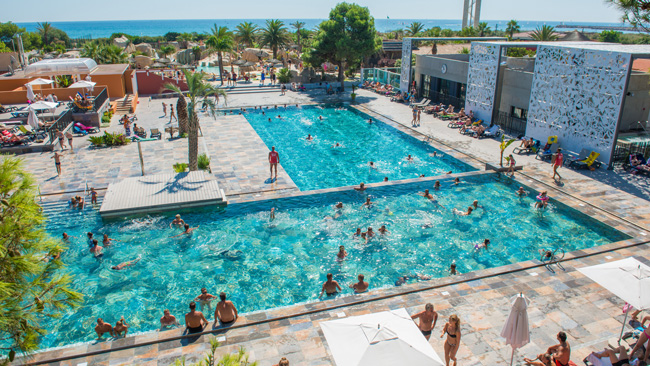 There's a multitude of activities and facilities for all ages, including an impressive pool complex with slides and waterfalls, a wellness centre, restaurant and a brand new shopping alley with clothes, wine and souvenir shops. Daily entertainment during the summer months includes fitness classes and evening shows.