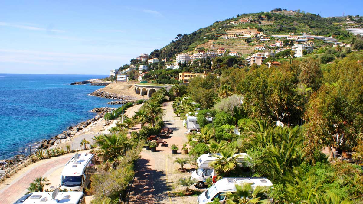 Villaggio dei Fiori is situated directly on the coast facing the turquoise waters of the Mediterranean Sea. It is a well-cared for, popular, open all year site and has small hardstanding/brickweave pitches with no soft ground to pitch awnings.
