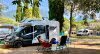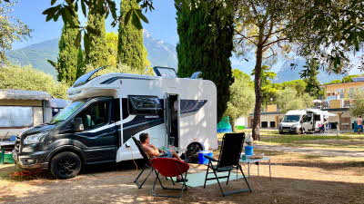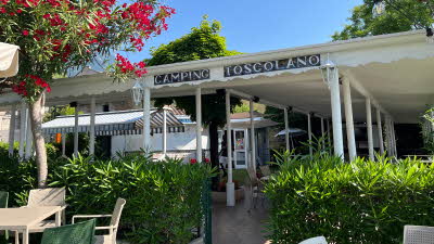 Camping Toscolano is set on the western bank of Lake Garda within the grounds of a 14th century ancient monastery and its gardens. The monastery is now converted into ‘The Hotel and Restaurant Antico Monasteroé’ to which campsite guests have access. The entrance to the grounds including the campsite is through a beautiful stone arch which is fairly narrow and takes some careful manoeuvring.