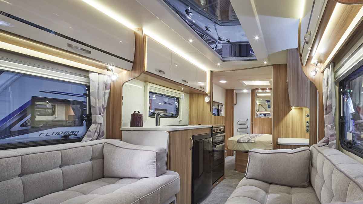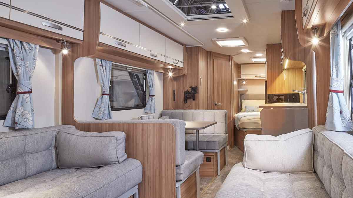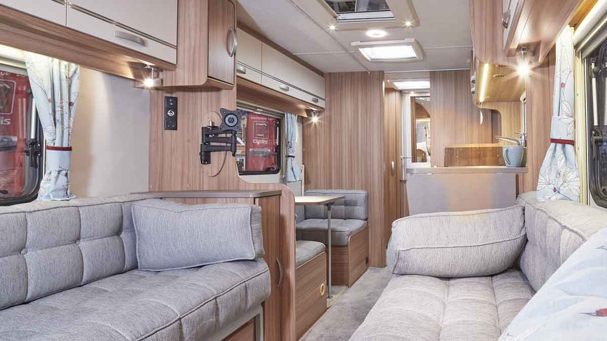- Bed sizes: front double 2.10m x 1.50m (6' 11" x 5' 0") or two singles, 1.50m x 0.74m (5' 0" x 2' 5"), fixed rear beds each measure