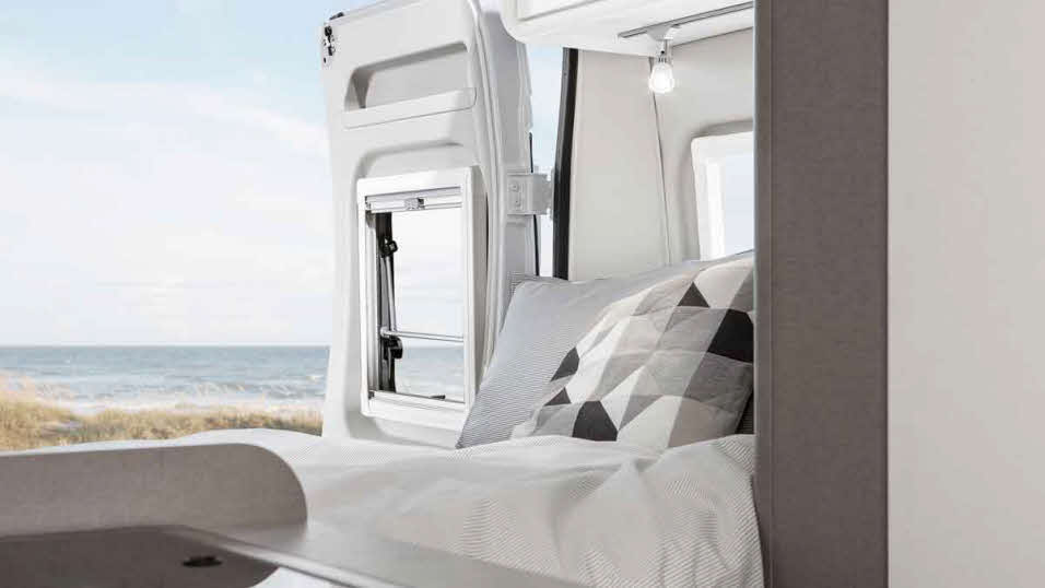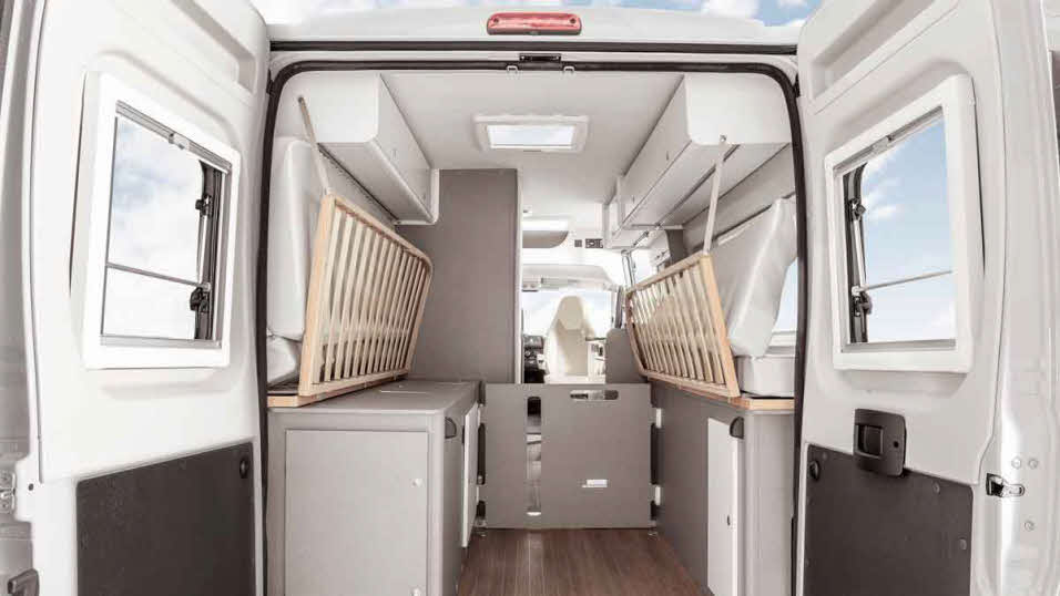 - Bed sizes: front bed 2.0m x 1.15m (6' 5" x 3' 7"), fixed rear island bed